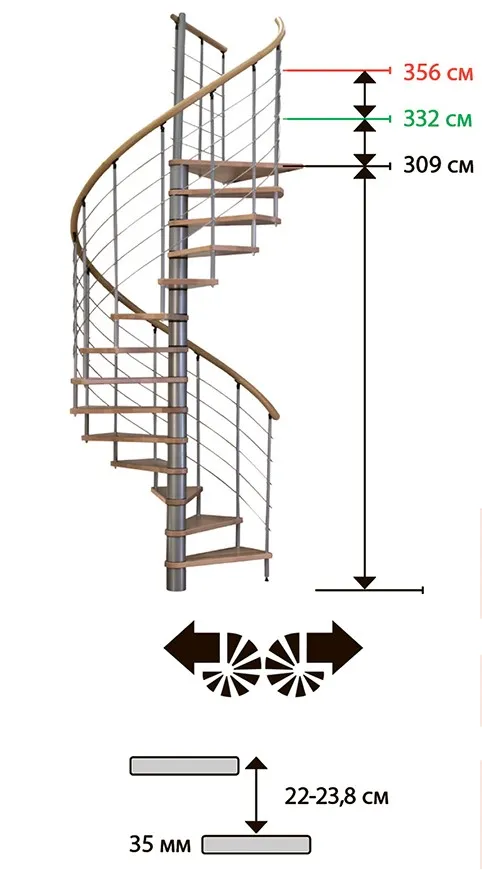 | Діаметр сходів | Ø120 см, Ø140 см, Ø160 см |