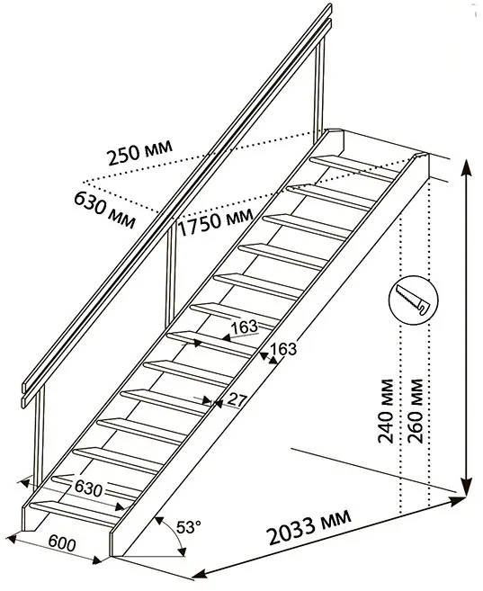 | Ширина сходів | 63 см з перилами |